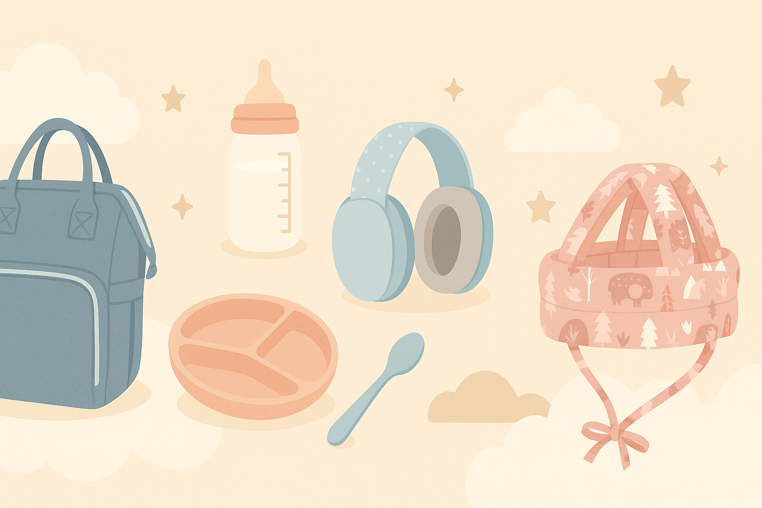 Notre collection réunit des produits essentiels comme les sacs à langer fonctionnels, les casques anti-chute confortables et les protections auditives douces, tous pensés avec soin pour allier design moderne, qualité et sécurité.
